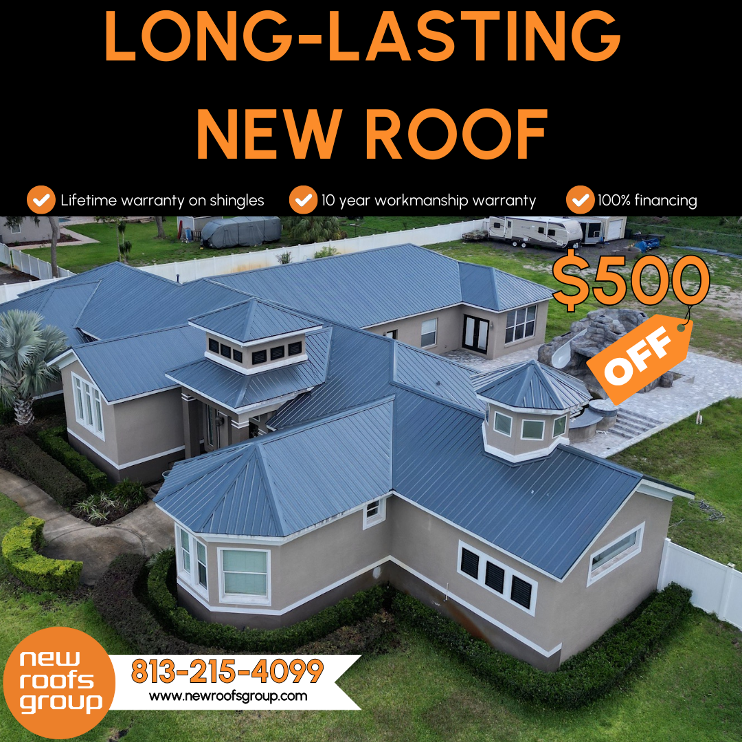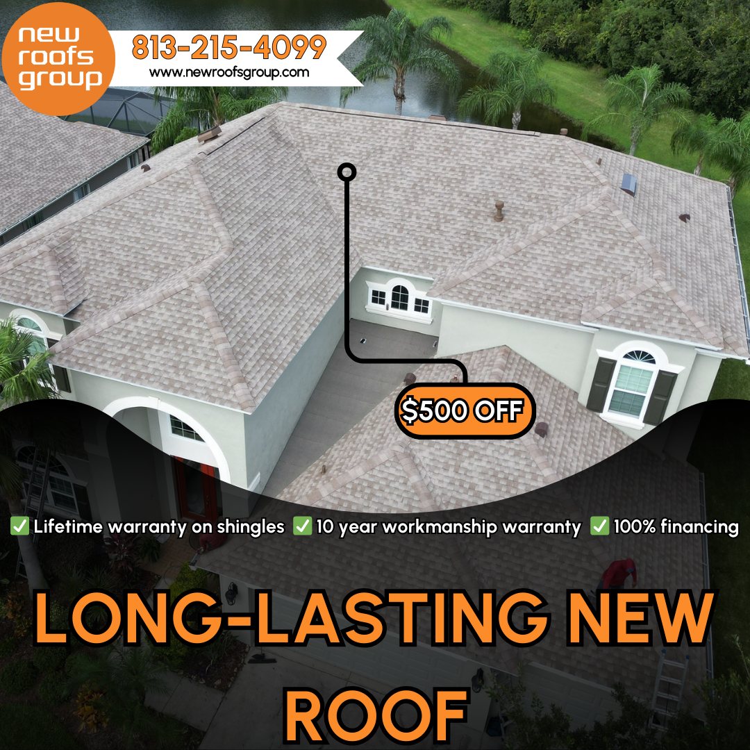 ✔ Strong headline overlay: “Long-Lasting New Roof”